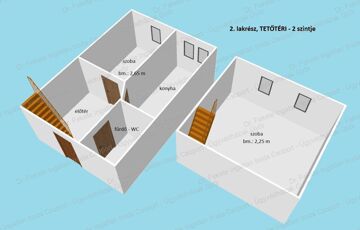 2. lakrész: tetőtér beépítéssel, a 2. emeletről van a bejárata, amely belső kétszintes:
