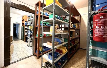 Az ingatlan elrendezése kifogástalanul szolgálja a praktikus működést: nagy eladótér, két irodahelyiség, ügyfélfogadó, több nagyméretű raktár, öltözők, vizes blokkok, teakonyha, valamint egy szoba méretű pince is rendelkezésre áll. A legnagyobb raktár 3 méteres belmagasságú, kamionos árumozgásra alkalmas, így logisztikai és nagykereskedelmi tevékenységhez is tökéletes alapot nyújt. A fűtésről 3 gázkazán és 5 hűtő-fűtő klíma gondoskodik, a melegvizet villanybojler és egy zuhanyzóra kötött kombi kazán adja. A villanyvezetékek nagy része alumínium, azonban a klímákhoz rézvezeték már kiépítésre került. A tetőszerkezet lécei és fóliái cserélve lettek, így az épület műszaki alapjai hosszú távra biztosítják a stabil működést.