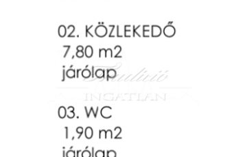 Földszint: előtér 4,9 m2, közlekedő 7,8 m2, wc 1,9 m2