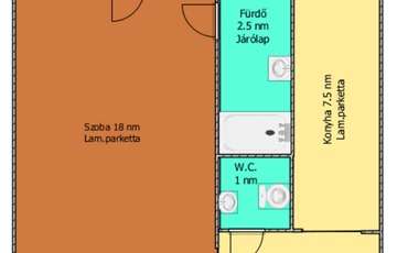 Az ingatlanban 1 szoba, konyha, fürdőszoba, külön nyíló W.C., előszoba, erkély található.