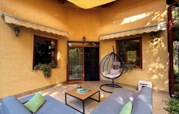 Diósdliget családi házas, csendes részén kínálunk megvételre egy 260 m2-es, 3 szintes, 7 szobás, 35,4 m2-es terasszal és 3 erkéllyel rendelkező, napfényes, délnyugati-délkeleti tájolású, klímával és riasztóval felszerelt, jó állapotú, kétgenerációs családi házat. Az ingatlan 2001 végén épült, 2016-ban és 2021-ben új nyílászárókat, a terasz új burkolatot kapott. Fűtése kondenzációs Vaillant gázkazánnal, részben padlófűtéssel, részben radiátorral megoldott. A házhoz tartozik egy 24,5 m2-es, kétállásos garázs. A parkosított kertben több tízéves erdeifenyő, ásott kút, automata öntözőrendszer, fából készült mászóka-hinta található. Buszmegálló 100 méteren belül, a közelben orvos, bölcsőde, óvoda, amerikai iskola, Interspar, termelői piac megtalálható.
