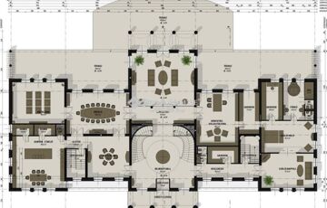 - A fő szintje a földszint, mely 586 nm alapterületű. Itt kerültek elhelyezésre a fő funkciók és az őket kiszolgáló egységek illetve egy önálló lakrész.