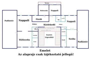 - A felső szintre 2 db íves lépcső vezet fel, három lakrész található, melyben nappali, háló és fürdő lett tervezve, ez 302 nm-es.