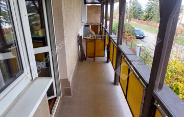 Földszint: előszoba, külön WC, konyha kamrával, tágas nappali; a bejárat előtt nagy terasz, ahonnan néhány lépcsőn keresztül, szintkülönbséggel juthatunk a gondozott kertbe. A nappalihoz nagy erkély tartozik..