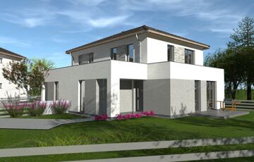A ház 30-as falazóelemből, 15 cm-es homlokzati szigeteléssel, 3 rétegű műanyag nyílászárókkal került kivitelezésre. Fűtésről kondenzációs kazán gondoskodik padlófűtéssel.