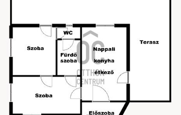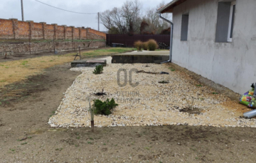 Egy 2 szoba konyha, étkező, fűrdőszoba, WC-s ház alapja, melybe már a vllany, viz, és szenyvízcsatorna kiépítése is megtörtént.