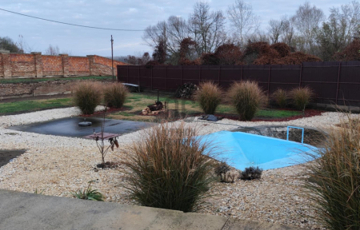 A telek új lemezkerítéssel körbekerített, elektromos kapuval rendelkezik.