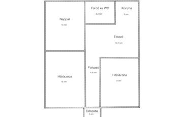 - Helyiségek: nappali, 2 hálószoba, konyha, fürdőszoba, WC, előszoba
