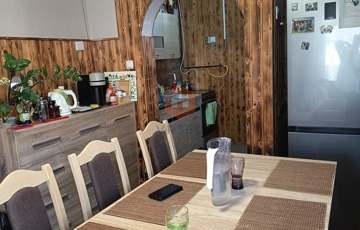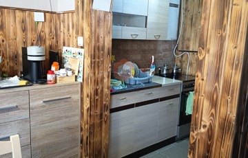 Konyhában és étkezőben fali lambéria, otthonos, kuckós hangulat