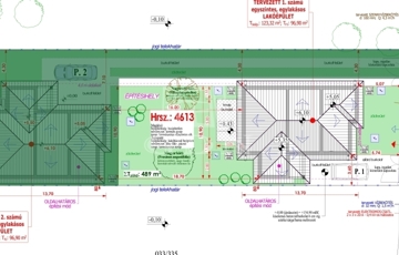 Az első ingatlan 438 m2-es kizárólagos használatú telekrésszel kerül kialakításra. Vételára: 69.900.000.- Ft.