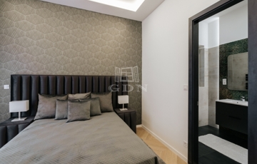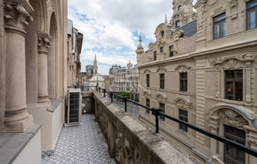 The street-facing apartment features a 6 sqm balcony with a direct view of the newly restored Klotild Palace, soon to reopen as one of Budapest’s most exclusive luxury hotels.
