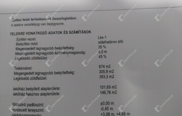 - telek nagysága /tulajdoni lapon meghatározott/ : 874 nm