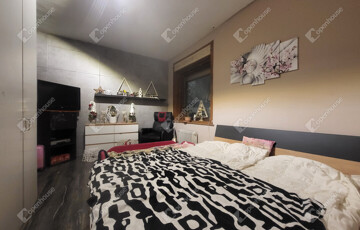A nappaliból egy folyosóra jutunk, ahonnan két külön nyíló szoba, egy külön WC, valamint a lépcsőház érhető el, amely az emeletre vezet.