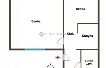 Az ingatlanban egy tágas nappali, egy hálószoba, egy konyha, egy előszoba, és egy ablakos fürdőszoba+wc, továbbá a helyiségeket összekötő közlekedő helyiségek találhatóak. Elrendezése okán összeköltözők, egyedülállók, idősek, kisebb családok számára ideális.