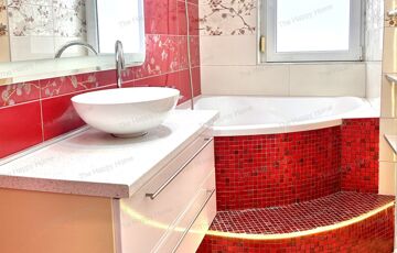 - Minőségi hideg–meleg burkolatok minden helyiségben