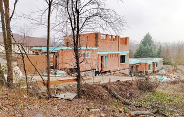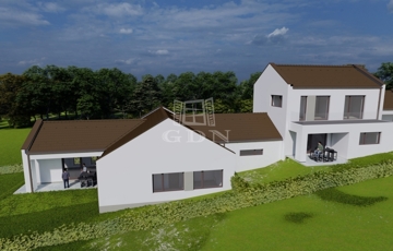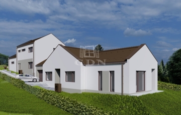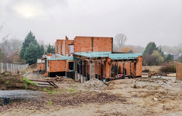 Veresegyház, Hegyek városrész csendes, kertvárosias részén, cca. 650 nm-es telek területtel, Új építésű, bruttó 176 nm-es, 5 szobás (nappali + 4 hálószoba, külön konyha, étkező), egy szintes, vasbeton födémes, hőszivattyús (levegő - vízes) padló fűtéssel, Dél - Nyugati fekvésű, műanyag thermo dió színű (3 rétegű, 7 légkamrás) nyílászárós, szigetelt (15 cm dryvit), új építésű, a másik féltől teljesen elszaparált, dupla garázzsal elválasztott, a másik lakóegységgel egy telken lévő, de külön, elválasztott úton megközelíthető családi ház (hátsó) eladó.