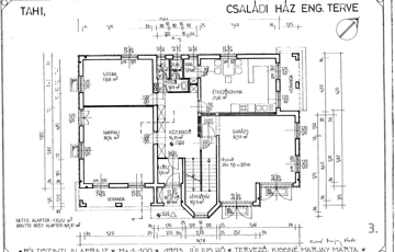 ✨ Tahitótfalu egyik legbékésebb utcájában kínálkozik ez a különleges, kastély jellegű otthon, amely összesen nettó 381,78 m² lakótérrel rendelkezik (pinceszint nettó 141,18 m², földszint nettó 135,92 m² – bruttó 169,37 m², tetőtér nettó 104,68 m²).
