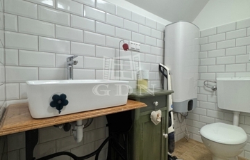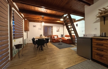 A földszinten amerikai konyha, fürdőszoba és WC található. A tetőtér beépített, két szoba került kialakításra.