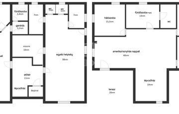 Második lakás (90 m²): 1 nagy szoba (50 m²), 6 személyes finn szauna, konyha, fürdőszoba