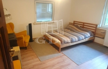 Garázs: 1 normál és 1 kisebb autó számára az utcaszinten, összesen kb. 40 m² (a garázs nem szerepel az alapterületen). A garázstól a ház kb. 40 m távolságra található.