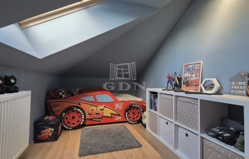 A gyerekszoba és a gardrób könnyedén egybe nyitható, így egy teljes értékű szoba is kialakítható a jelenlegi két félszoba helyett.