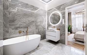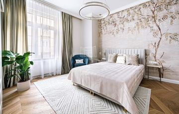 This is more than a refurbished apartment – it has been elevated to a new level of sophistication. With brand-new utilities, designer chandeliers, chevron oak flooring, premium tiles and sanitary ware, and a beautifully curated interior, the apartment immediately impresses. The 3.30 m ceiling height enhances the elegant, airy atmosphere.