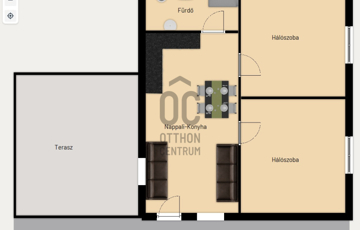 A lakás nagy terekkel rendelkezik. a 30 m2-es amerikai konyhás nappali mellett két 20 m2 feletti hálószoba található.