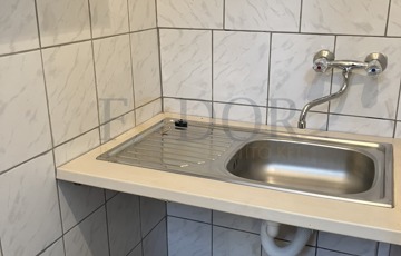 A nappaliban megőrzött halszálkás fa parketta igazi klasszikus érték, felújítva különleges hangulatot adhat. A többi helyiség hidegburkolatos, a szobában linóleum található.
