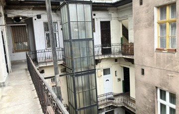 A lakás a 3. emeleten, egy körgangos, lifttel rendelkező épületben található, a gang legutolsó lakásaként – nincs előtte átjárás, teljes privát érzetet ad. A 3,55 méteres belmagasság kiemelkedően ritka, galériázható, és igazán tágas érzetet biztosít.