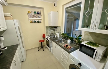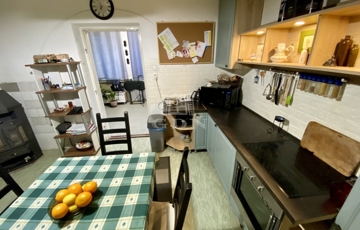 A hátsó, 49,3 m²-es épület teljeskörűen felújított, modern kialakítású. Ytong falazata kívül 10 cm hőszigetelést kapott, a tetőn pedig 30 cm szigetelés gondoskodik a kiváló energiahatékonyságról. A kényelmet padlófűtés és klímával történő fűtési lehetőség biztosítja, így a rezsiköltségek rendkívül kedvezőek lehetnek.