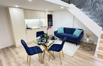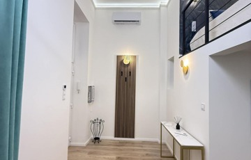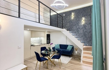 Az ingatlan bruttó 40 nm, 27 nm-es alapterületét a több, mint 4 méteres belmagasságot kihasználva egy 13 nm-es, teljes értékű, 183 cm belmagasságú galériaszint egészíti ki. Jól megtervezett belső kialakításának köszönhetően kis mérete ellenére a lakás a tágasság érzetét kelti.