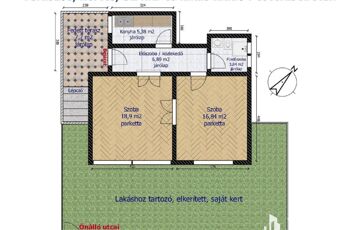 A kizárólagosan használható kertbe saját utcai bejárat vezet. A saját körbekerített kert miatt ez az ingatlan gyermekkel és kisállattal is ideális választás.