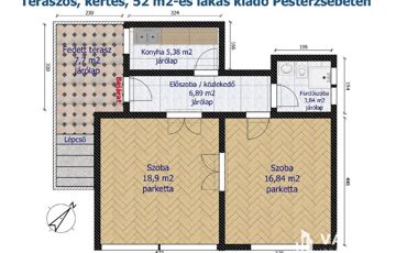 TERASZOS, KERTES, 52 M2-ES BERENDEZETT ÉS GÉPESÍTETT LAKÁS KIADÓ PESTERZSÉBETEN