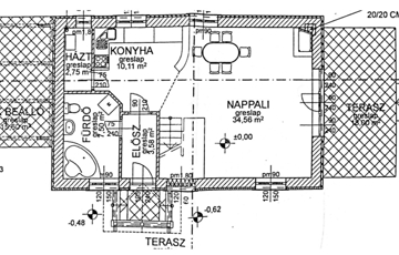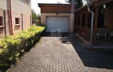 Az 580 négyzetméteres telekre épült ház kertjében egy garázst és egy különálló tároló helyiséget is építettek.
