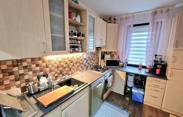 A lakás két oldalról is kertkapcsolatos, így reggeli kávé, napozás vagy akár egy kis gyerekjátsósarok is könnyedén megoldható — a földszinti elhelyezkedés pedig minden korosztálynak hatalmas előny.