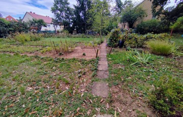 A lakáshoz saját kertrész tartozik a ház melletti kertben (diófával), amely alkalmas kertészkedésre és konyhakert kialakításásra.