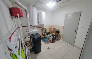 A nagy méretű háztartási helyiségben került elhelyezésre a kazán , egy 150 és egy 120 literes új bojler
