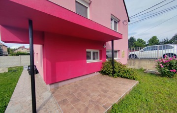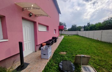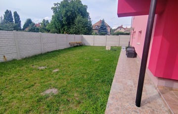 A ház közel 400 nm-es teljesen körbekerített telken helyezkedik el, amelyhez füvesített udvar tartozik valamint több autó számára parkolási lehetőség.