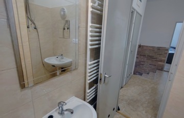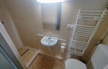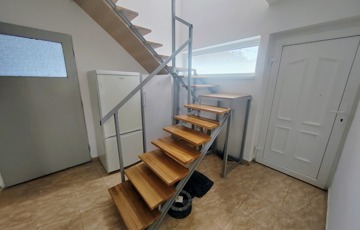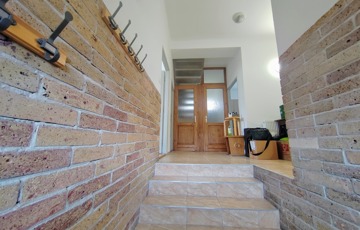 A lépcsőn leérkezve jutunk az előszobába , amelyből egy konyha , 2 szoba , 2 külön fürdő -wc-vel és