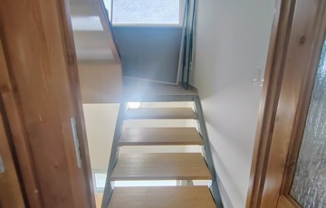 Az alsó szintet egy dupla fa ajtó különití el a felsőtől, mely igény szerint nyitható és zárható.