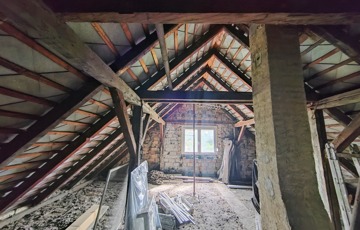 A nagy méretű tetőtér beépíthető, így a bővítés lehetősége adott , jelenleg 2 ablak elhelyezésre került.