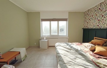 A családi ház az 1950-es évek elején épült betonozott alapzattal, kis pincével, amelyre 1986-ban ráépített a tulajdonosa egy új szintet, cserép héjalással, északnyugati fekvéssel, remek elosztású, szintenként nagyon tágas és világos szobákkal. A ház minden szempontból kellően világos.