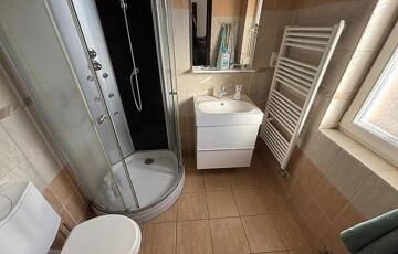 A fűtést gázcirkó biztosítja: a földszinten padlófűtéssel, az emeleten radiátoros hőleadással. A nyári melegben Daikin hűtő-fűtő klíma gondoskodik a kellemes hőmérsékletről.