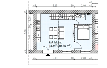" A"- lakás rendkívül jó beosztású, hasznos alapterülete 61 nm.