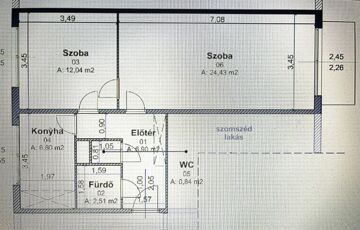 2. emeletén elhelyezkedő, EGYEDI HŐMENNYISÉGMÉRŐVEL felszerelt, ERKÉLYES, 2 szoba hallos, TELJESEN FELÚJÍTANDÓ panellakást.