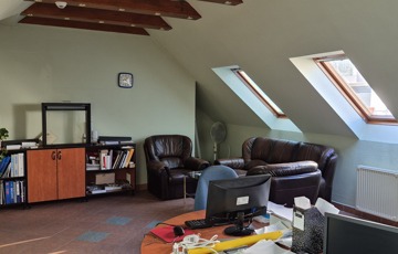 Az épület járólapos burkolatokkal, fa nyílászárókkal, teljes biztonsági kamerarendszerrel és mennyezetbe épített tűzvédelmi rendszerrel felszerelt. A helyiségek légkondicionáltak. A szuterén szinten raktár és kazánház található, két gázkazánnal és radiátoros hőleadással.