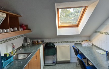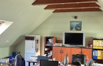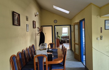 A földszinten tágas, 50 m²-es eladótér található, irodahelyiségekkel, raktárral, valamint egy 114 m²-es, világos, sokablakos üzemi résszel, két udvari bejárattal. Innen lépcső vezet a tetőtérbe, ahol szintén 114 m²-es üzemi terület, továbbá tárgyaló, iroda, ebédlő és fürdőszoba kapott helyet. A tetőtéri irodaszintről külön lépcső vezet vissza az eladótérbe, így a belső közlekedés rugalmasan használható.