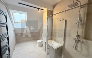 A lakás , igazából most készült el , korábban nem volt beépítve a tetőtér : nos tényleges elmondható , hogy minden új : először is , komoly szigetelést kapott a tető részeinél , új hőszigetelt fa ablakokkal , új aljzat beton , szigetelés és burkolatok , új villamos hálózat , új fűtésrendszer , gázkazán / radiátorok és hűtő fűtő klíma is , új fürdőszoba és új egyedi gyártású konyha , új beépített háztartási gépekkel ..