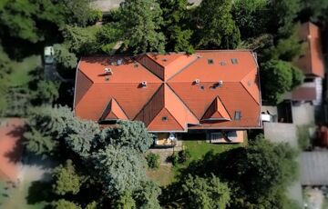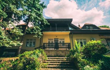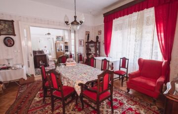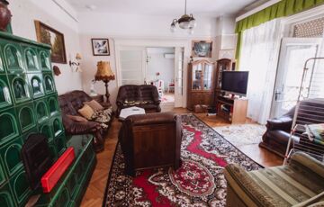 Az 1930-as években épült villaépület egy hangulatos, gondozott 2200 nm-es saroktelken található. A telekre két székelykapun keresztül jutunk be, a gépkocsik számára készült kapu távirányítású! A fákkal körbevett ház kívülről eredeti formáját megőrizte, belül viszont három önálló lakásra osztott. Ebből kettő egymás felett van, a harmadik pedig egy belső kétszintes lakás. A két lakás különbejáratú, de egy belső lépcső is összeköti őket, továbbá közös kerten, és két fedett gépkocsi-beállón osztoznak!