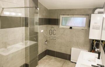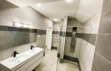 - fürdőszobában dupla mosdókagyló, valamint a térérzetet növelő üveg zuhanyfal található. A fürdőszoba mellett egy külön helyiségben kapott helyet a WC.
